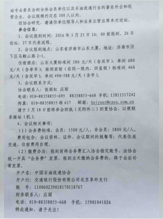附件:关于参加中国加油站发展高峰论坛暨加油(气)站专业委员会第二次会员大会的通知
