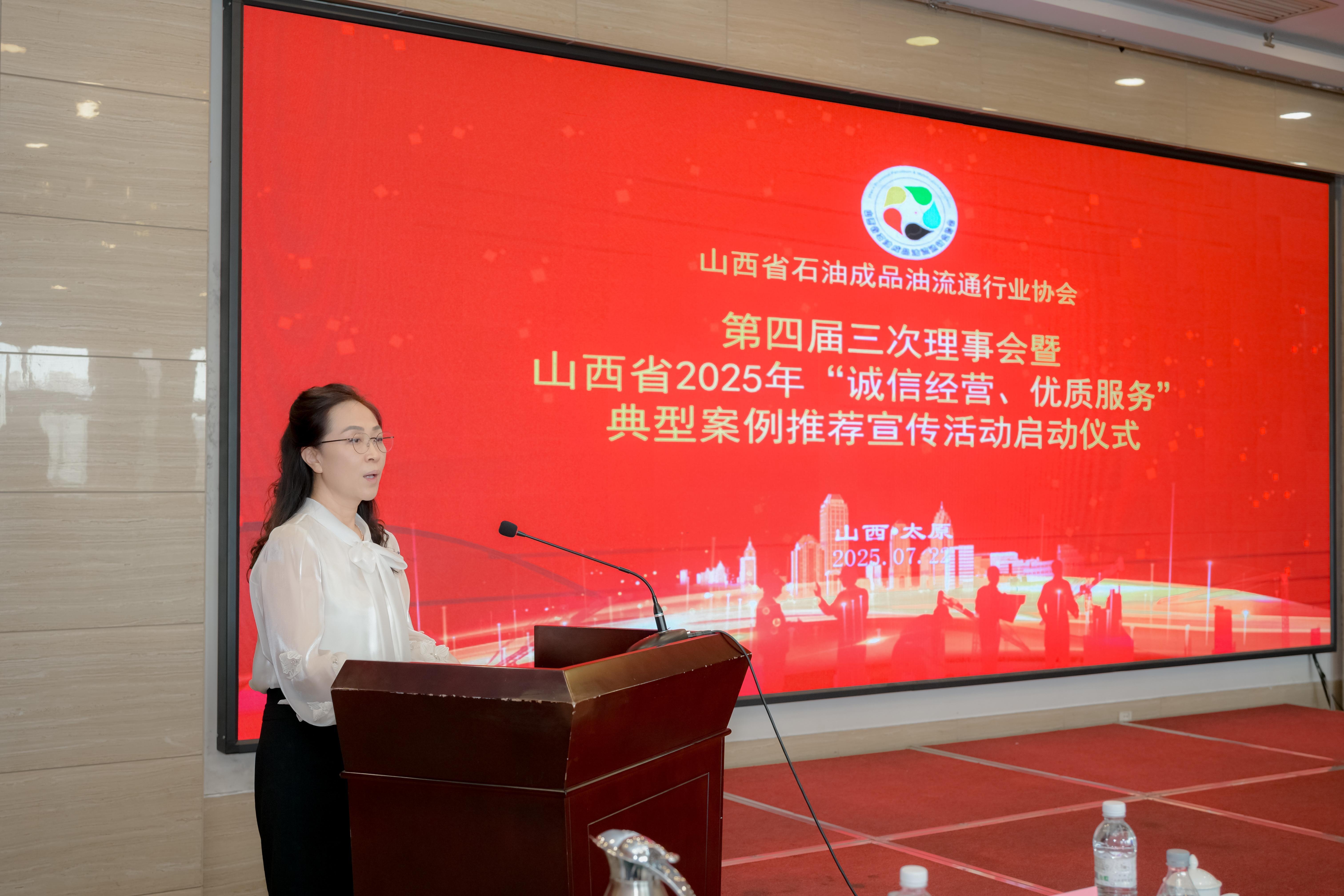 7月22日,山西省石油成品油流通行业协会第四届三次理事会会议暨山西省2025年“诚信经营、优质服务”典型案例推荐宣传活动启动仪式在太原隆重召开。会议在省商务厅、省民政厅的指导下,由省协会执行副会长、秘书长李成文主持,全体理事、特邀嘉宾、兄弟协会代表及行业代表共同出席。