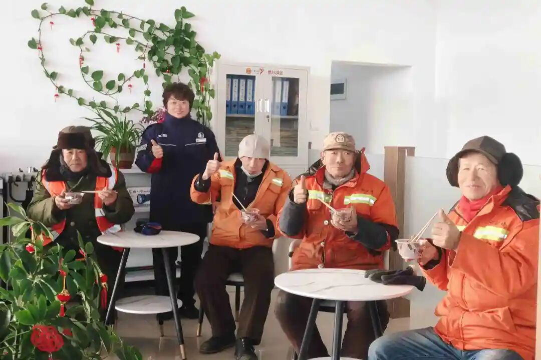 腊八当天,尧都公司依托爱心驿站开展“腊八送暖粥 情系奔波人”主题活动,为过往司机、环卫工人等户外劳动者送上精心熬制的腊八粥,在寒冬中传递温暖与关怀。在加油现场,他们为前来加油、歇脚的环卫工人、货运司机及其他旅客递上一碗碗热气腾腾的腊八粥,并亲切叮嘱大家注意防寒保暖与出行安全。
