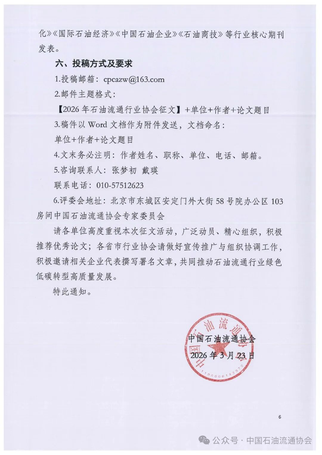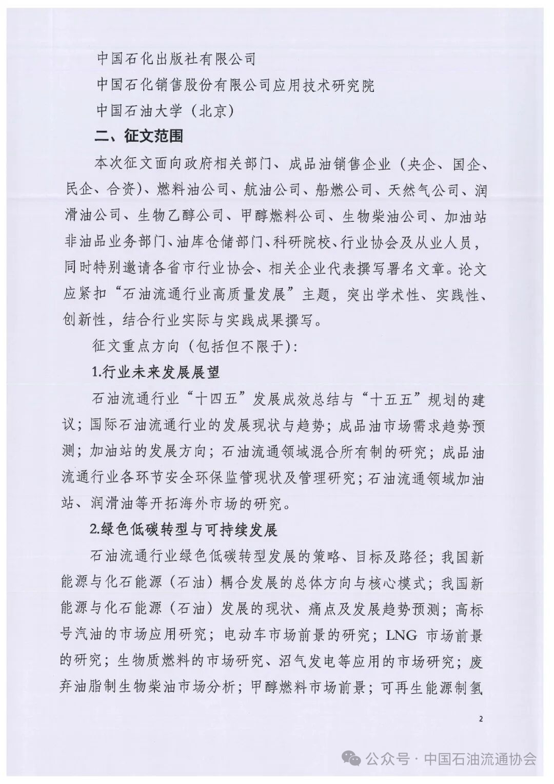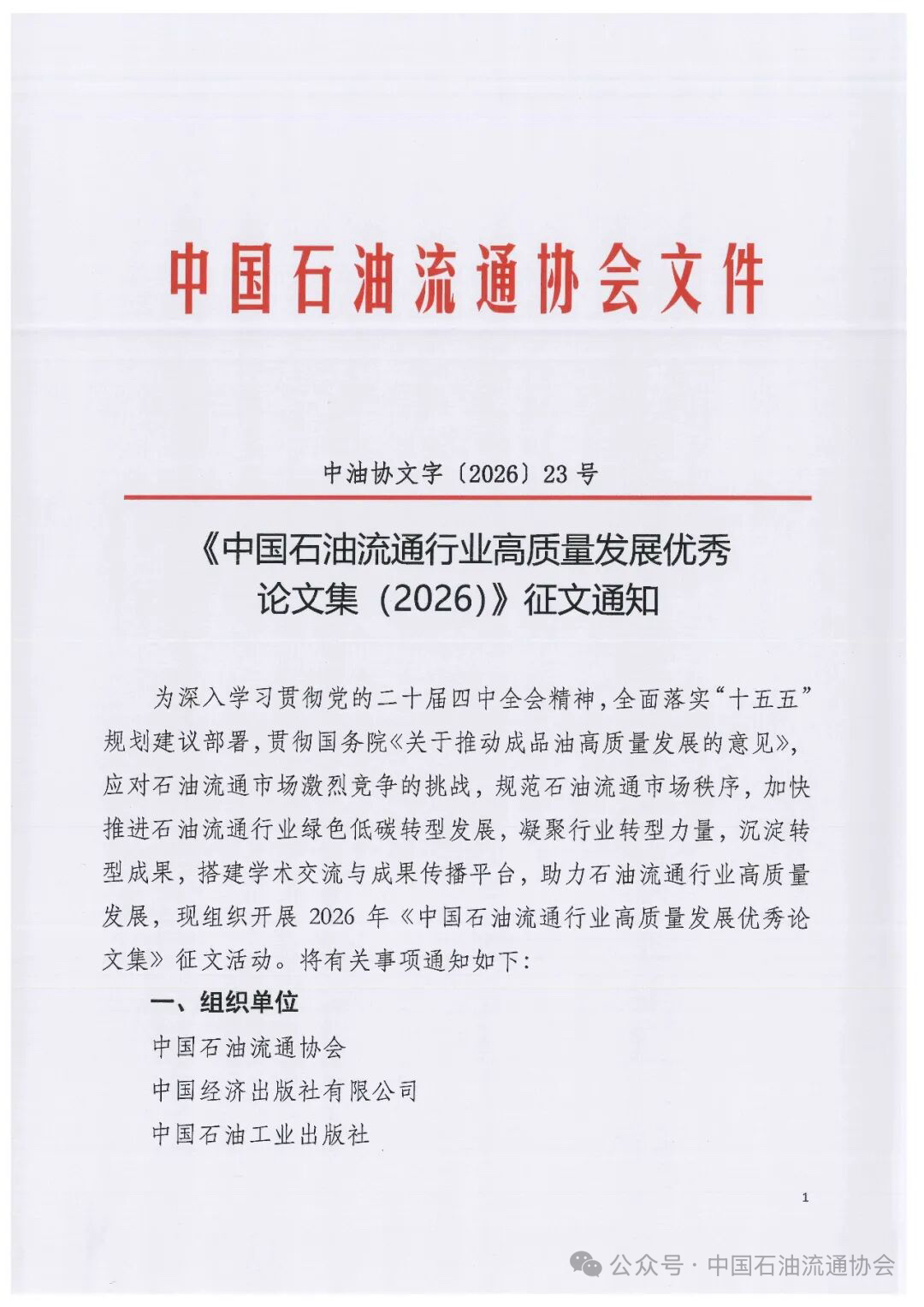 《中国石油流通行业高质量发展优秀论文集(2026)》征文通知